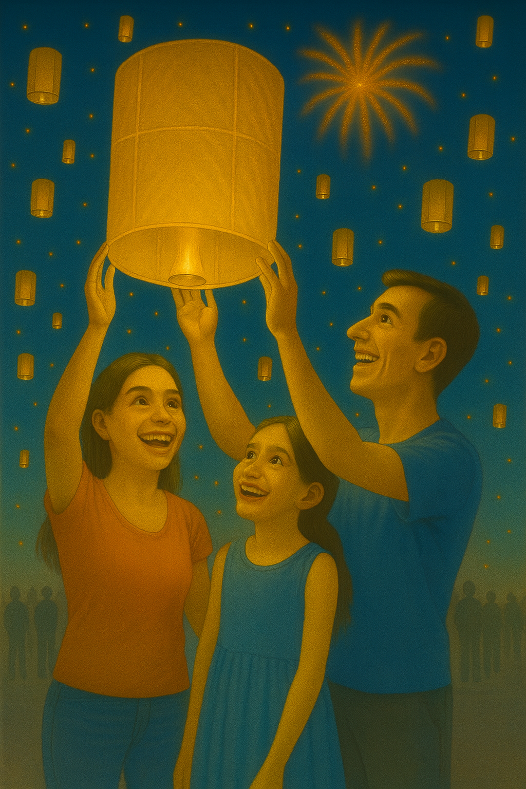 Die Laternen-Show beginnt nach Sonnenuntergang für maximale Sichtbarkeit und Wirkung.